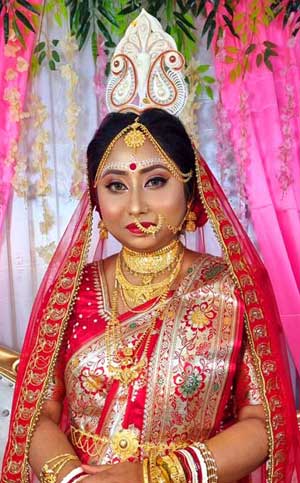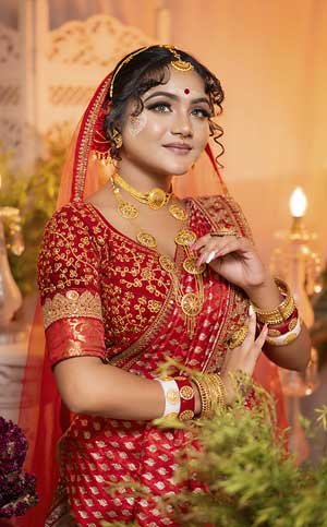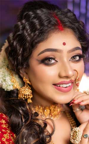 Bengali bridal makeup artists in Kolkata specialize in traditional yet simple makeup styles, bringing out your natural beauty on your special day.